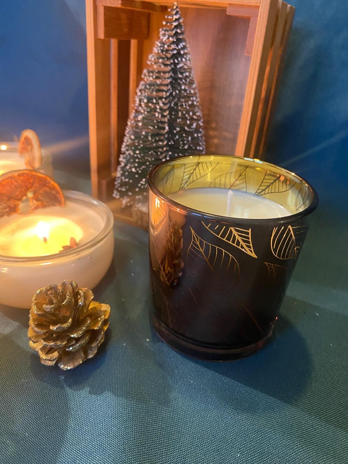 Bougie feuilles dorées